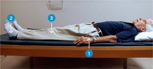 You will perform each of the leg and ankle exercises while lying down on a flat surface, such as a couch or bed, with your legs out straight.